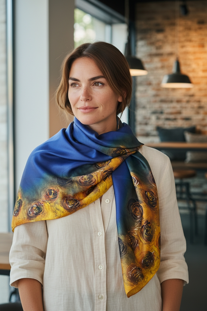 AURORA- Pañuelo de Seda 90*90. MONA Silk Square