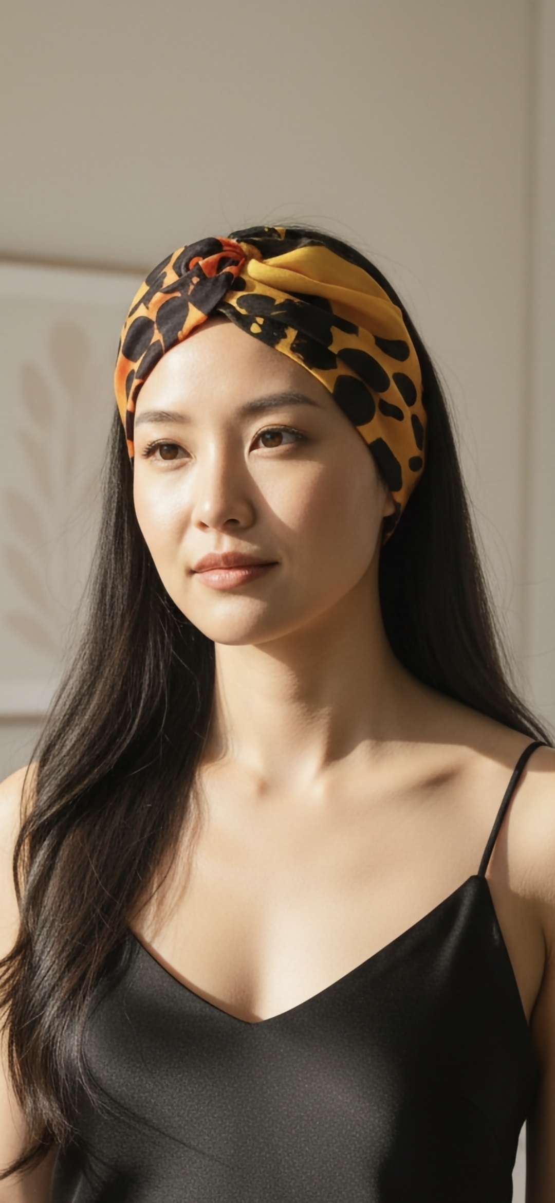 Turbante de seda natural pintado a mano