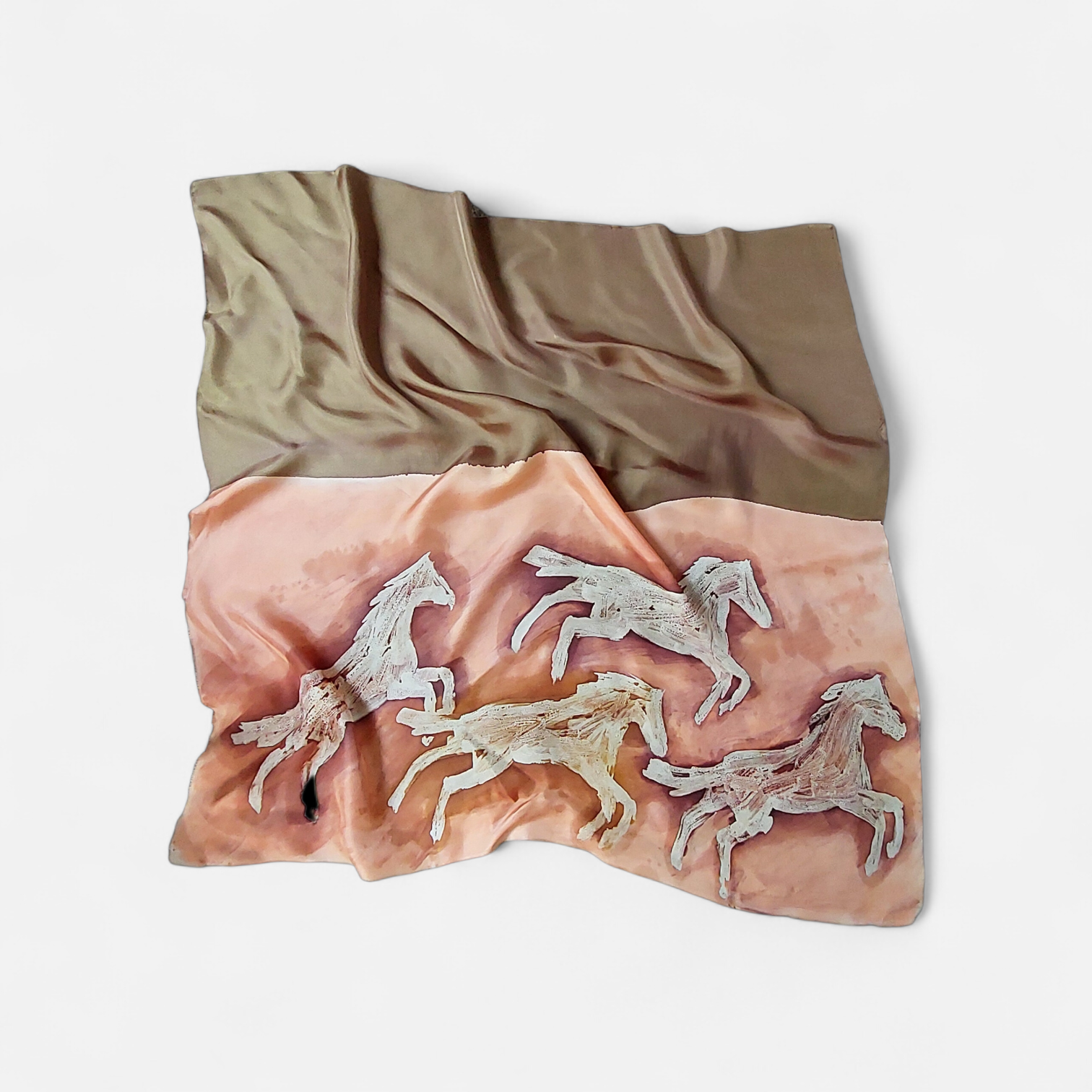 La fuerza indómita, el alma en movimiento. Caballos en plena carrera, capturados en la fluidez de la seda satén. Un diseño inspirado en la libertad, en los paisajes de arena y viento donde la naturaleza se despliega sin límites.